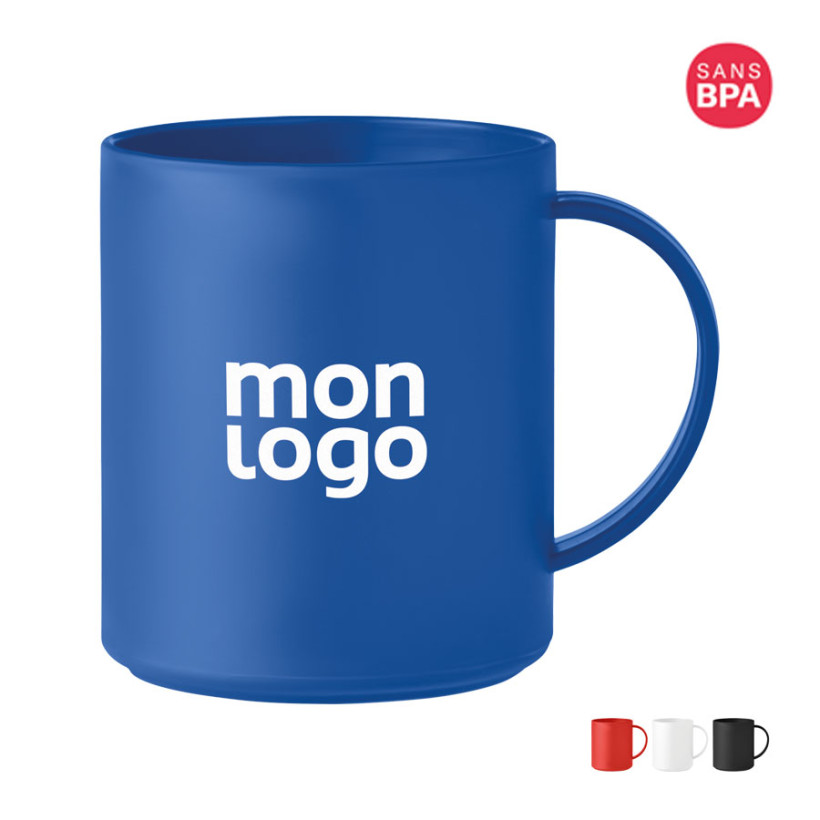 Ce mug de 300ml réutilisable en polypropylène, garanti sans BPA. Son design simple mais élégant fera le bonheur de tous vos collaborateurs amateurs de boissons chaudes. Le modèle est disponible en plusieurs coloris. Il peut passer au micro-onde comme au lave-vaisselle.