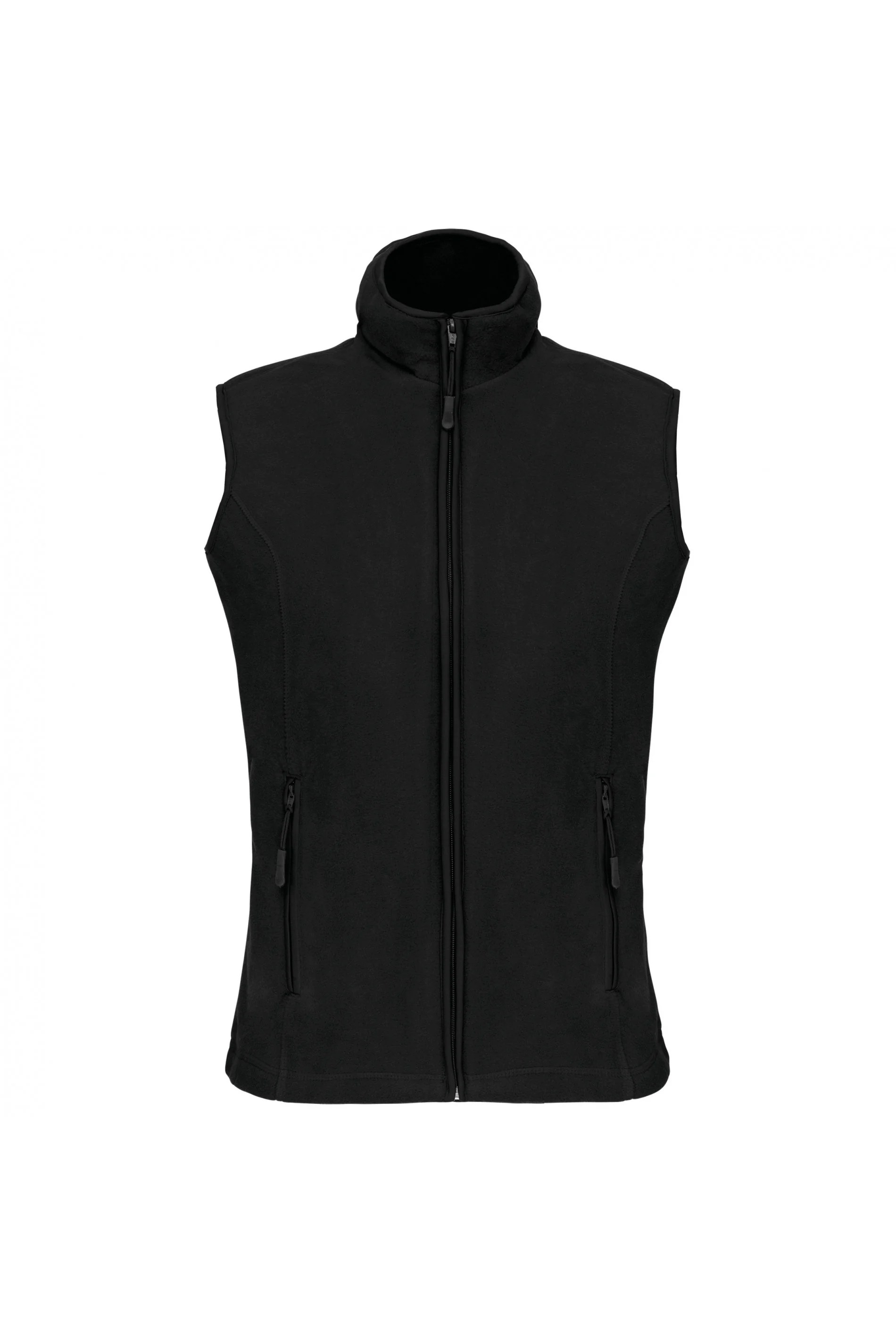 Fermeture zippée. Coupe cintrée avec 2 poches zippées. Biais de finition col, emmanchures et zip.