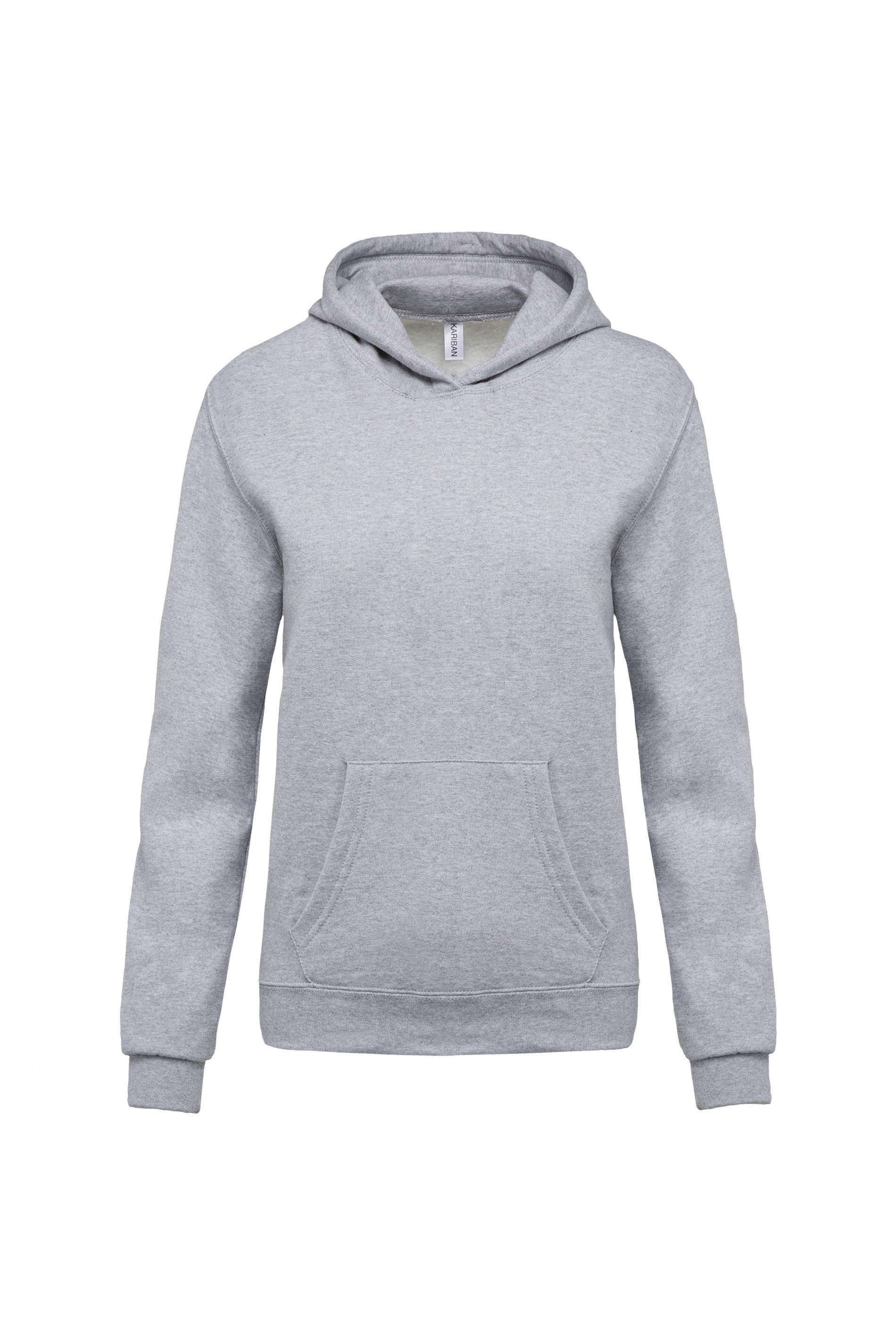 Manches montées. Capuche doublée avec cordon de serrage ton sur ton. Poches. Kangourou. Finition bord-côte bas de manches et de vêtement.