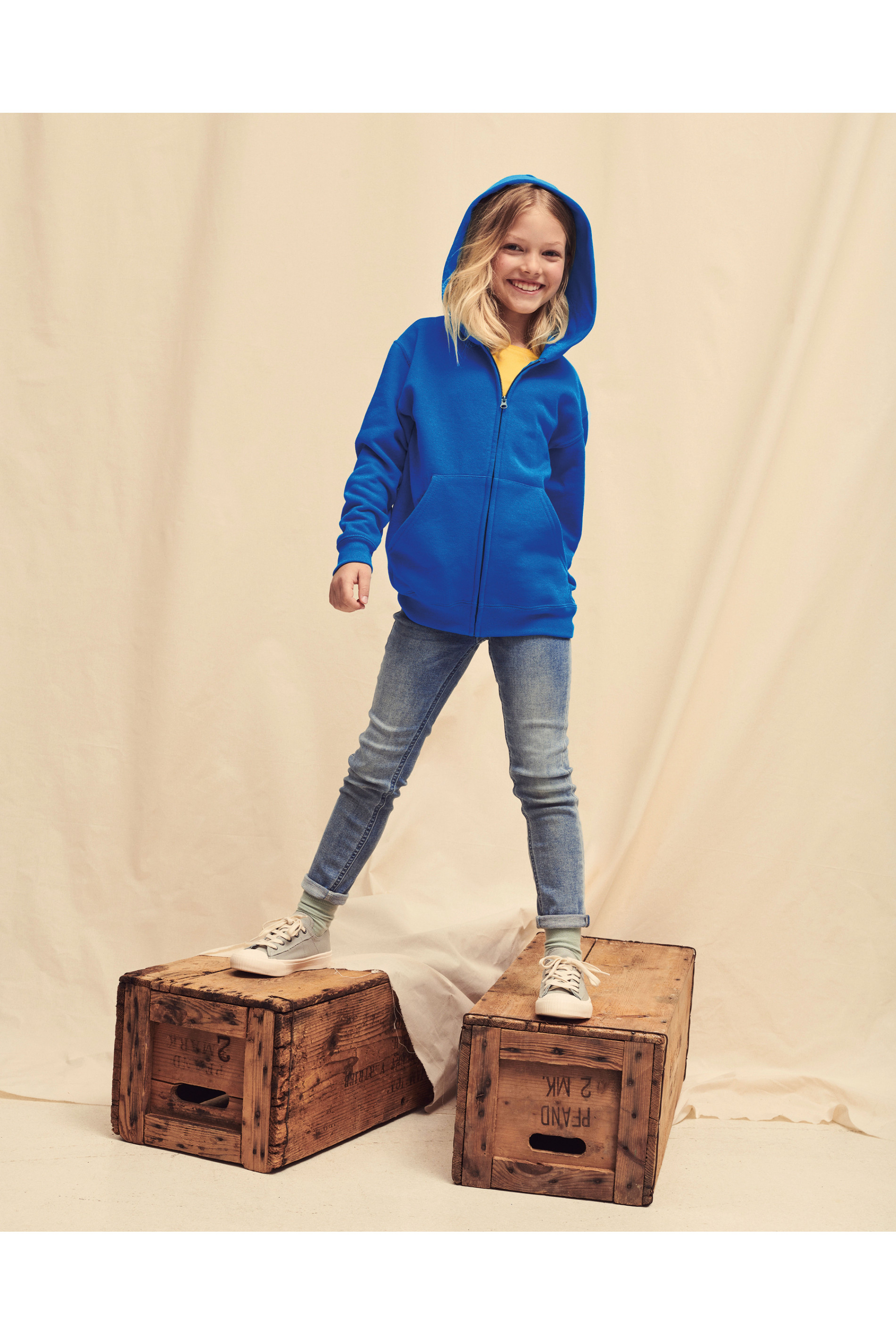 Bande de propreté ton sur ton en Jersey. Capuche doublée sans cordons (en conformité avec la législation européenne pour les enfants). Poches kangourou. Zip sur toute la longueur. Taille et poignets avec bord-côte en coton/Lycra.